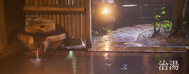 今も新鮮な温泉(温泉温度 60度・若干加水)をたっぷり湯船にかけ流しております。温泉の泉質をカラダ全体で滞在中は思う存分楽しんでいただきたく、様々な湯船や変わり湯処も併設しております。