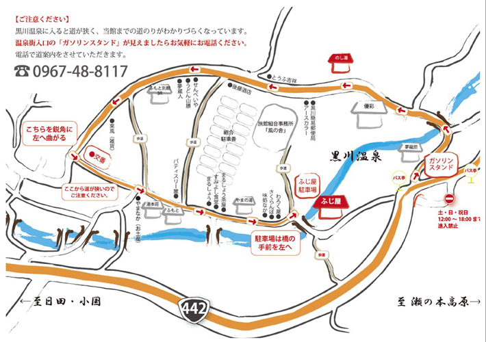 〒869-2402 熊本県阿蘇郡南小国町大字満願寺6541 【連絡先】 TEL(0967)48-8117 FAX(0967)48-8116 【チェックイン】 15:00 【チェックアウト】11:00 ※宿泊プランによりチェックイン・アウト時間が異なります。 【定休日】不定 【部屋数】8室 【駐車場】8台(無料)
