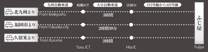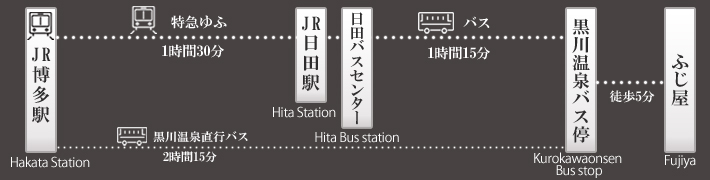 【旅館名】ふじ屋 〒869-2402 熊本県阿蘇郡南小国町大字満願寺6541 【連絡先】 TEL(0967)48-8117 FAX(0967)48-8116 【チェックイン】 15:00 【チェックアウト】11:00 ※宿泊プランによりチェックイン・アウト時間が異なります。 【定休日】不定 【部屋数】8室 【駐車場】8台(無料)